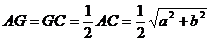 The center of gravity G is at the intersection of the diagonals , i.e.