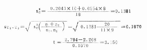 用变换后的数据计算 x1,s12;x2,s22再代入式(19.10)、(19.11)、(19.12)计算t值。