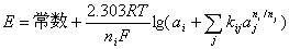 溶液离子活度测定 测定离子活度是利用离子选择电极与参比电极组成电池,通过测定电池电动势来测定离子的活度,这种测量仪器叫离子计。与PH计测定溶液PH值类似,各种离子计可直读出试液的PM值,不同的是,离子计使用不同的离子选择电极和相应的标准溶液来标定仪器的刻度。此外,利用电极电位和PM的线性关系,也可以采用标准曲线法和标准加入法测定离子活度。 标准曲线法是在同样的条件下用标准物配制一系列不同浓度的标准溶液,由其浓度的对数与电位值作图得到校准曲线,再在同样条件下测定试样溶液的电位值,由校准曲线上读取试样中待测离子的含量。该方法的缺点是当试样组成比较复杂时,难以做到与标准曲线条件一致,需要靠回收率实验对方法的准确性加以验证。 标准加入法是将一定体积和一定浓度的标准溶液加入到已知体积的待测试液中,根据加入前后电位的变化计算待测离子的含量。例如,某待测溶液加入离子强度调节剂后的体积为Vx,浓度为Cx,待测离子活度系数为f,则指示电极电位为 (1.18) 假定在待测溶液中加入体积为Vs,浓度为Cs的标准溶液,由于加入的标准溶液的体积远小于待测溶液的体积,新溶液的浓度近似为 ,其中 ,然后再用同一电极测定电极电位,得 (1.19) 由于测定条件相同,故K=K',离子强度基本不变,f=f'。这样,(1.18)和(1.19)两式相减,得 (1.20) 如果令 ,则(1.20)式可写为 (1.21) 式中S为电极的响应斜率,意即单位PM变化引起的电位值变化。这样,由两次测定的电位差ΔE和加入的标准溶液的浓度,即可求得未知溶液的浓度Cx。在实际测定时,两次测量都是电池的电动势,由于测量条件相同,参比电位和液接电位都相同,因此,式(1.21)中ΔE实际上是两次测量的电池电动势之差。 值得注意的是,应由离子选择性电极测得的物质含量为活度,而分析上常常要求浓度,浓度C和活度a之间的关系为a=fc,f随试液中离子强度而变化。这样就无法求得溶液的浓度,为了使试液中离子强度保持一致,通常采用的办法是在试液中加入惰性盐,使离子强度恒定,该惰性盐称为离子强度调节剂。由于离子强度调节剂加入量较大,这样试液的离子强度基本上由离子强度调节剂所决定。有时试液中还要加入PH缓冲剂,消除干扰的掩蔽络合剂。例如测定水中氟离子,为了稳定PH在一定的范围,并消除铁、铝离子干扰,需要加入PH缓冲剂、络合剂、惰性盐的混合溶液,称为总离子强度调节缓冲剂(TISAB)。 离子选择电极除了对待某特定离子有响应外,溶液中共有的离子对电极电位也有贡献,形成对待测离子的干扰。此时,电极电位可写成: (1.22) 式中I表示待测离子,j表示共存离子,kij称为选择系数,它表示电极对主要离子的响应与对干扰离子响应的倍数,该值越小,电极对待测离子的选择性越好。例如某PH玻璃电极对Na+的选择性系数KH+, Na+=10-11,表示该电极对H+的响应比对Na+的响应灵敏1011倍,Kij的倒数称为选择比,表示在溶液中干扰离子的活度aj和主要离子的活度ai之比为多大时,离子选择电极对两种离子活度的响应电位相等。Kij虽然是一个常数,但是受很多因素影响,且无严格的定量关系,可以通过实验测定。 |