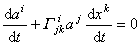 设曲线的方程为xi=xi(t), 它的切矢量为,它沿曲线平行移动的条件为