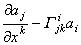 它们是关于指标k协变的二阶张量,分别称为矢量的协变导数,分别记作.