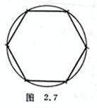 [已知外接圆作正六边形] 以外接圆半径在其圆周上顺次截段,并连接各点,即为所求正六边形(图2.7).