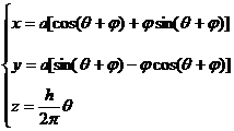 式中是两个参数.=常数”表示曲面上不同的螺旋线,它们有相同的螺距h,但有不同的螺旋角;“=常数”表示不同位置的渐开线.