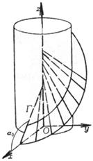 [阿基米德螺旋面]    一条与z轴相交并与Oxy平面的交角为的直线作螺旋运动而形成的螺旋面称为阿基米德螺旋面(图7.22),其方程为