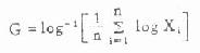 算术均数 公式(4.6) χ=(1/n)∑X 公式(4.7) χ=C+(1/n)(Xi-C) 公式(4.8) χa=Xa-1+(1/n)(Xa-Xa-1) 公式(4.9) χ=(1/n)∑fX 几何均数 公式(4.10)