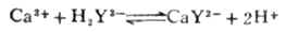 在滴定过程中也应控制一定的酸度,因为EDTA在滴定中不断有H+释放出来,使溶液的PH值降低。例如用EDTA二钠溶液滴定Ca2+时,其反应式如下: