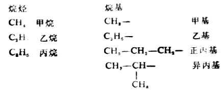 (二)系统命名法 对构造比较复杂的化合物的命名可采用系统命名法。系统命名法可用于各种化合物的命名。 1.烷基 烃分子中去掉一个氢原子所剩下的原子团叫烃基。脂肪烃去掉一个氢原子所剩下的原子团叫做脂肪烃基,通常用R表示。烷烃的基叫做烷基,它的通式CnH2n+1烷基的命名根据烷烃而定。多于两个碳原子的烷烃,有可能衍生出多个不同的烷基。例如:
