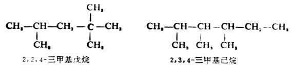 2.系统命名法 我国现用的系统命名法是根据IUPAC(International Union of Pure and Applied Chemistry)规定的原则,再结合我国汉语文字的特点而制定的。烷烃的系统命名法的主要之点是如何确定主链和处理取代基的位置。 (1)选择最长的连续的碳链为主链作为母体,叫某烷。较短的链为支链,作为取代基。 (2) 从靠近支链的一端开始,把母体烷烃的各个碳原子依次编号,以确定取代基的位次。取代基的位次号与名称之间用一短线相连,写在母体名称之前。例如: