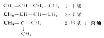 二、烯烃的同分异构现象(一)构造异构 由于存在双键,使烯烃的异构体数目比相应的烷烃多。如丁烷只有两种同分异构体,而分子式为C4H8的丁烯则有三种构造异构体。