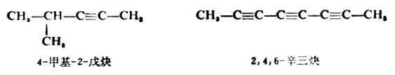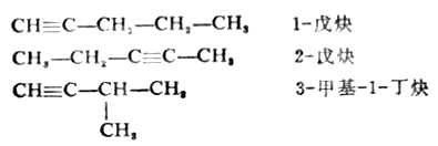 炔烃由于碳链构造和三键位置的不同,也具有同分异构现象。不过因为三键支链的位置的限制,其异构体的数目要比碳原子数相同的烯烃为少。例如,含有五个碳原子的炔烃,只有三种同分异构体: