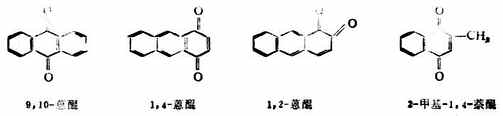 醌类化合物是以苯醌、萘醌等作为母体来命名的。两个羰基的位置可用阿拉伯数字标明写在醌名字前。也可用邻、对、远或α、β等表明两上羰基的相对位置。母体上如有取代基,可将取代基的位置、数目、名称写在前面。例如:
