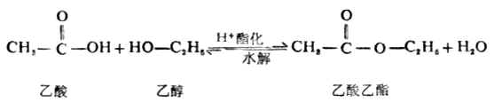 羧酸与醇的酯化反应是可逆的,而且反应速率很慢,需用酸作催化剂。例如: