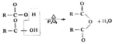 应用SOCL2制备酰卤时,副产物都是气体,便于处理及提纯。 3.酸酐的生成 除甲酸外,一元羧酸与脱水剂共热时,两分子羧酸可脱去一分子水,生成酸酐。
