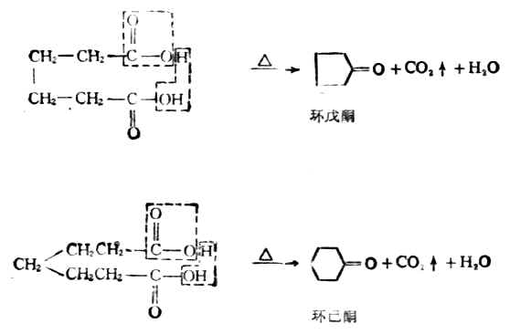 3.己二酸,庚二酸 己二酸、庚二酸与氢氧化钡共热时,既失水又脱羧 ,生成环酮。