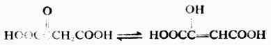四、个别氧代酸(一)丙酮酸 丙酮酸CH3COCOOH是无色具刺激性臭味的液体,沸点167℃,能与水混溶。其酸性强于丙酸及乳酸。丙酮酸及其烯醇式(烯醇式丙酮酸 )是人体糖代谢的重要中间产物。在酶的作用下,丙酮酸可还原为乳酸,也可以脱羧为乙醛。 (二)乙酰乙酸 乙酰乙酸CH3COCH2COOH是无色粘稠液体,不稳定,很易脱羧为丙酮,也能还原为β-羟基丁酸。乙酰乙酸、β-羟基丁酸及丙酮是脂肪酸在人体内不完全氧化的中间产物,合称为酮体。正常情况下,人血中酮体的含量很少(0.8-5mg/100ml)。正常人每昼夜从尿中排出约40mg酮体。在某些情况下,例如饥饿、糖尿病等,血液中酮体的含量增加(300-400mg/100ml)。由于乙酰乙酸及β-羟基丁酸的酸性,会使血液的PH值下降乃至引起酸中毒。 (三)草酰乙酸 草酰乙酸HOOCCH2COCOOH是能溶于水的晶体,具有一般二元酸及酮的性质,也有酮式-烯醇式互变异构:它也是人体内糖代谢的中间产物。