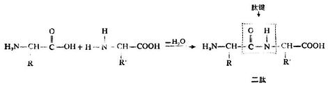 二肽分子中含有的酰胺键 叫做肽键。二肽分子中的末其端 仍含有自由的氨基和羧基,因此还可以继续与氨基酸缩合成为三肽、四肽以至多肽。