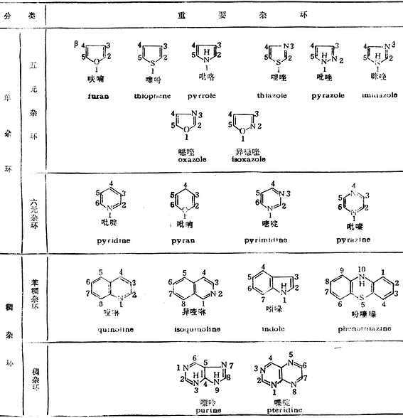 另有特殊编号的,如嘌呤等(见表19-1)。