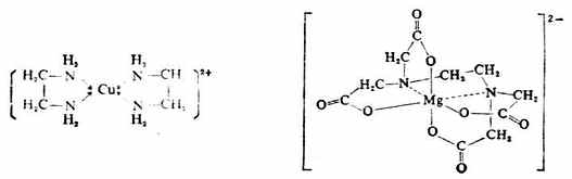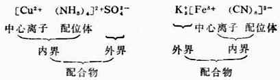 在计算中心离子的配位数时,一般是先在配合物中确定中心离子和配位体,接着找出配位原子的数目。如果配位体是单齿的,配位体的数目就是该中心离子的配位数。例如,[Pt(NH3)4]Cl2和[Pt(NH3)2Cl2]中的中心离子都是Pt2+,而配位体前者是NH3,后者是NH3和Cl--,这些配位体都是单齿的,因此它们的配位数都是4。 如果配位体是多齿的,那么配位体的数目显然不等于中心离子的配位数(见螯合物一节)。 (四)配离子(或络离子)的电荷 配离子的电荷等于中心离子电荷与配位体电荷的代数和。 [Cu(NH3)4]2++2+4×0=+2 [Fe(CN)6]3- +3+6×(-1)=-3 [Fe(CN)6]4- +2+6×(-1)=-4 [HgI4]2- +2+4×(-1)=-2