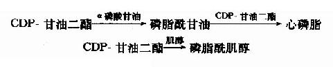 3.甘油磷脂生成 (1)磷脂酰胆碱和磷脂酰乙醇胺 这两种磷脂生成是由活化的CDP胆碱与CDP-乙醇胺和甘油二脂生成。此外磷脂酰乙醇胺在肝脏还可由与腺苷蛋氨酸提供甲基转变为磷脂酰胆碱。 (2)磷脂酰丝氨酸 体内磷脂酰丝氨酸合成是通过Ca++激活的酰基交换反应生成,由磷脂酰乙醇胺与丝氨酸反应生成磷脂酰丝氨酸和乙醇胺。 磷脂酰乙醇胺+丝氨酸—→磷脂酰丝氨酸+乙醇胺 (3)磷脂酰肌醇、磷脂酰甘油和心磷脂 上述三者生成是由活化的CDP甘油二酯与相应取代基团反应生成