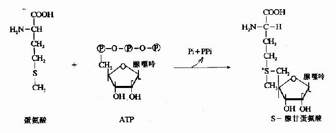 蛋氨酸分子中的甲基也是一碳单位。在ATP的参与下蛋氨酸转变生成S-腺苷蛋氨酸(Sadenosylmethionine,又称活性蛋氨酸)。S腺苷蛋氨酸是活泼的甲基供体。因此四氢叶酸并不是一碳单位的唯一载体。