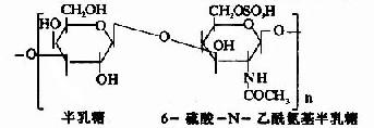 一、化学结构蛋白多糖中的多糖链为杂多糖,因其组成成分中均含氨基已糖,所以称为氨基多糖或糖胺聚糖(glycosaminoglycans)。人体组缔组织中常见的氨基多糖包括透明质酸(hyaluronicacid)、硫酸软骨素(chondroitin sulfate)、硫酸角质素(keratan sulfate)和肝素(heparin)等。 表13-2 人体中常见的糖胺多糖
