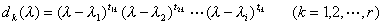 [λ矩阵的标准形]  λ矩阵的秩为r,不变因子为,则