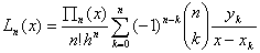 [拉格朗日插值公式]  已知单变量函数n+1个节点及其对应的函数值,对于插值区间内任一点x,可用下面拉格朗日插值多项式计算函数值∶