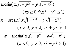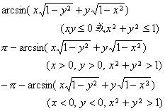 | arc sin x + arc sin y = | arc sin x – arc sin y = |