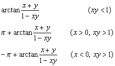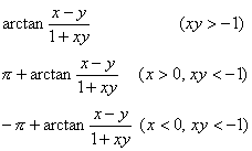 | arc tan x + arc tan y = | arc tan x – arc tan y = |
