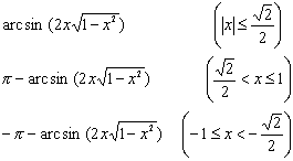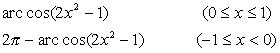 | 2 arc sin x = | 2 arc cos x = |
