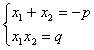 | 方程 | ax2+bx+c=0 | x2+px+q=0 |