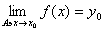 [变换的极限] 假定f是把一个拓扑空间X里的一个点集A变进另一个拓扑空间Y的变换.又假定x0是A的一个聚点.如果Y里有一点y0,对y0的任何一个邻域V,x0有一个邻域G,使